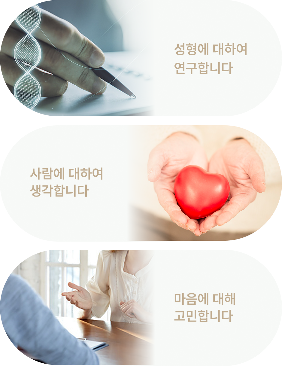 동네의원의 친근함과 강남 성형외과의 전문성을 결합한 하이브리드형 병원으로, 환자에게 편안하면서도 수준 높은 의료 경험을 제공합니다.